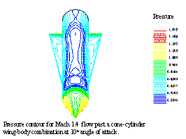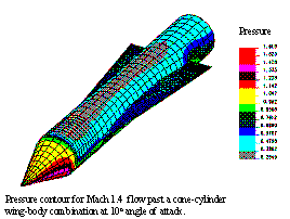 Problem: Mach 0.4, 0.9 and 1.4 flow past a cone-cylinder-wing combination at 10o angle of attack
