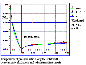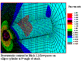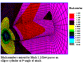 Mach 1.2 flow past an ellipse-cylinder projectile at 8o angle of