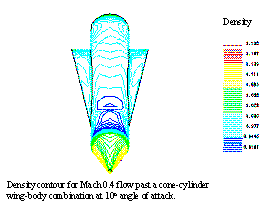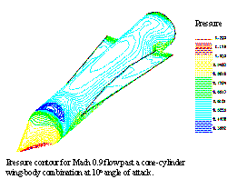 Problem: Mach 0.4, 0.9 and 1.4 flow past a cone-cylinder-wing combination at 10o angle of attack